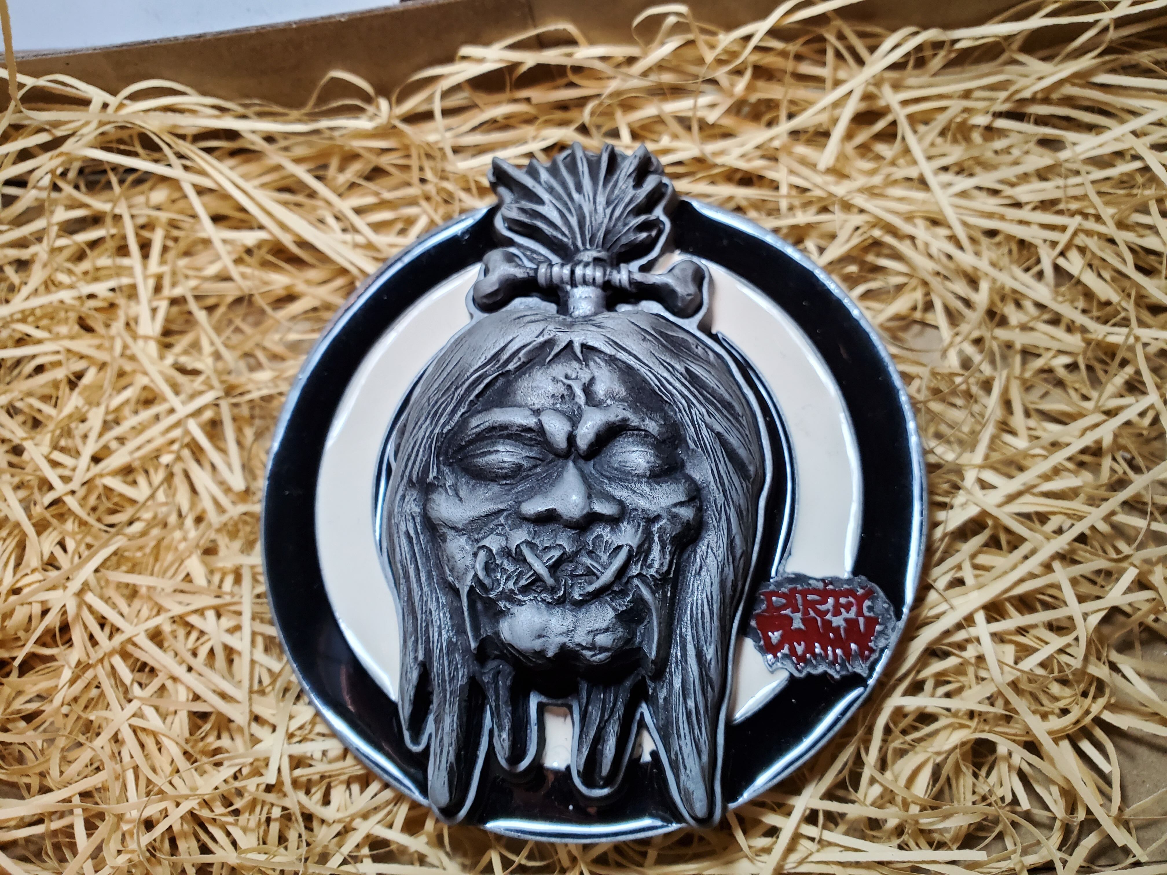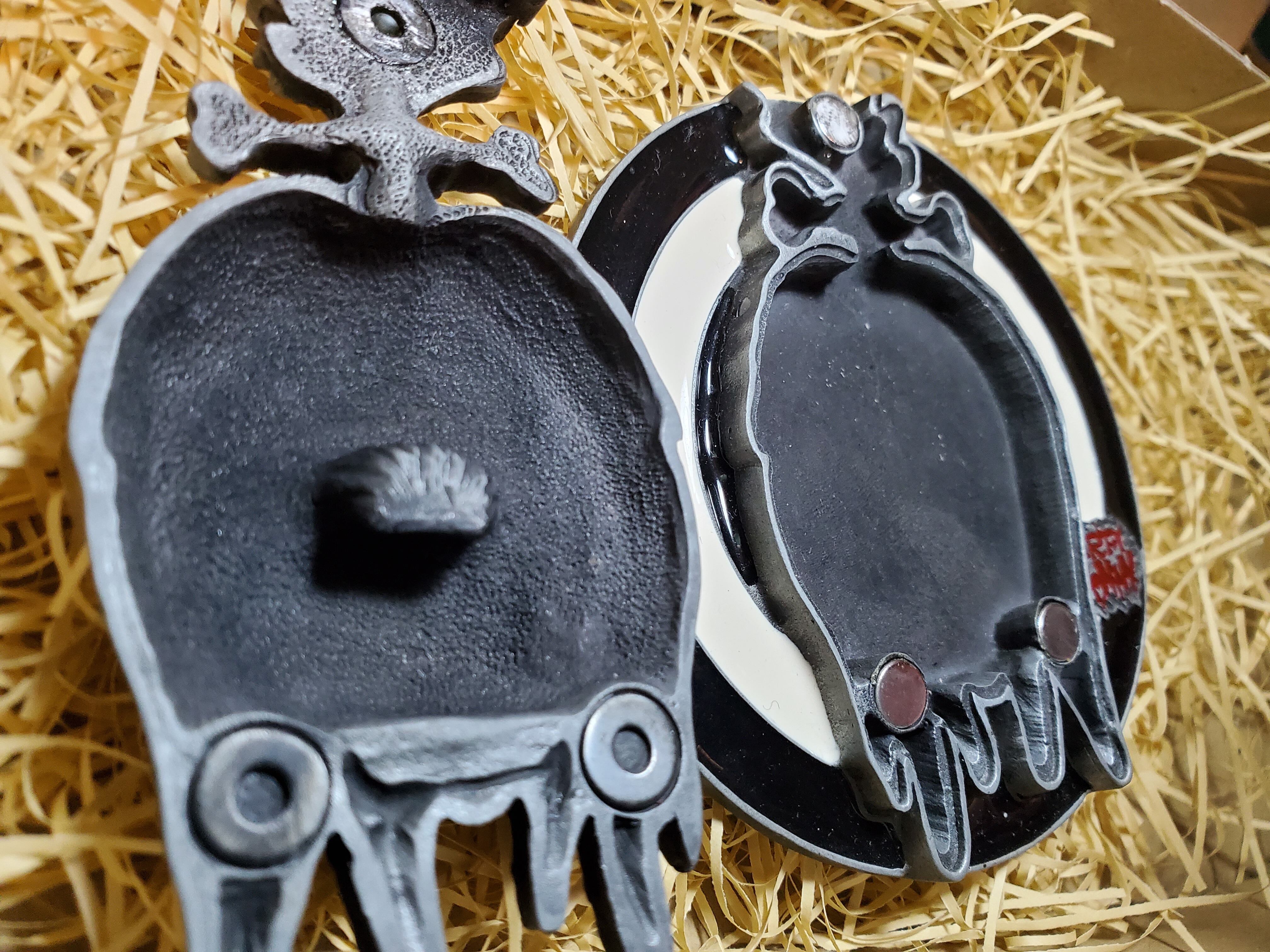 亜鉛合金(ZINC)をブラック加工し、色落ちさせていい味をだしているバックルです。